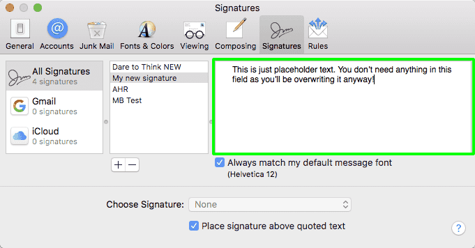 4. Paste signature into mac mail